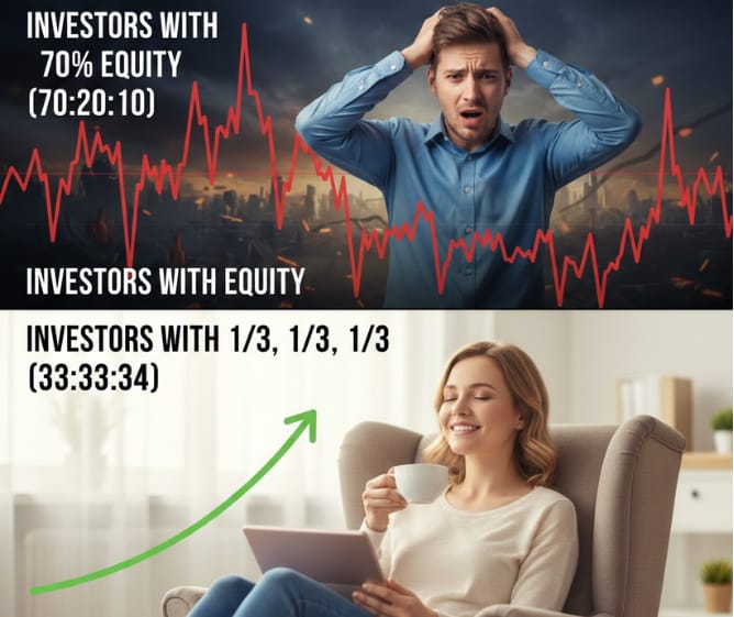 Option 1 (20% Equity) also had its moments, topping the performance chart in two years, proving that even a highly conservative portfolio can outperform aggressive ones during certain market cycles.