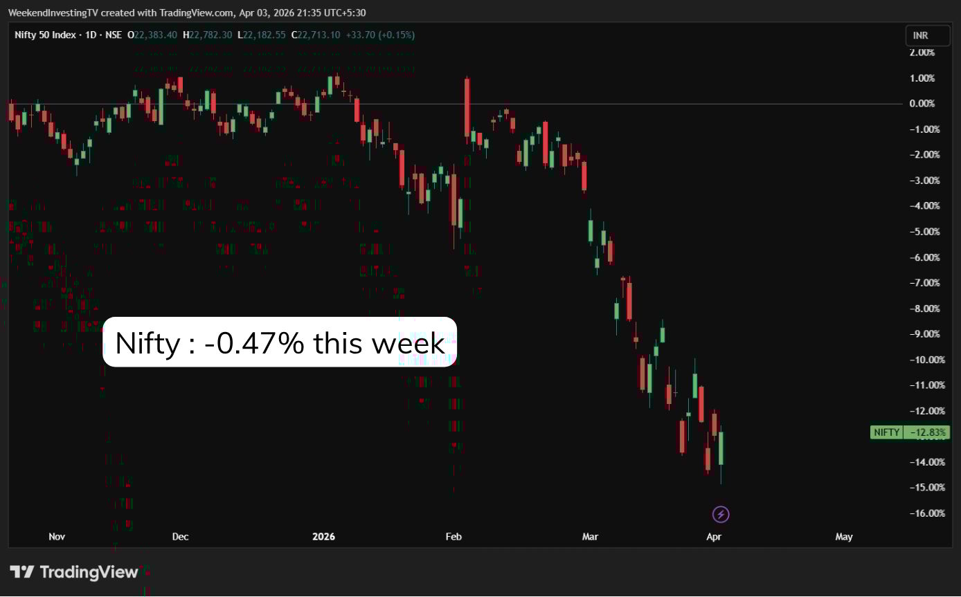 The chart on Nifty this week is very interesting. Over three sessions, the market has basically gone down only 0.47% this week despite all the doomsday scenarios being painted. While the war is getting escalated, markets are trying to find some levels to go forward.