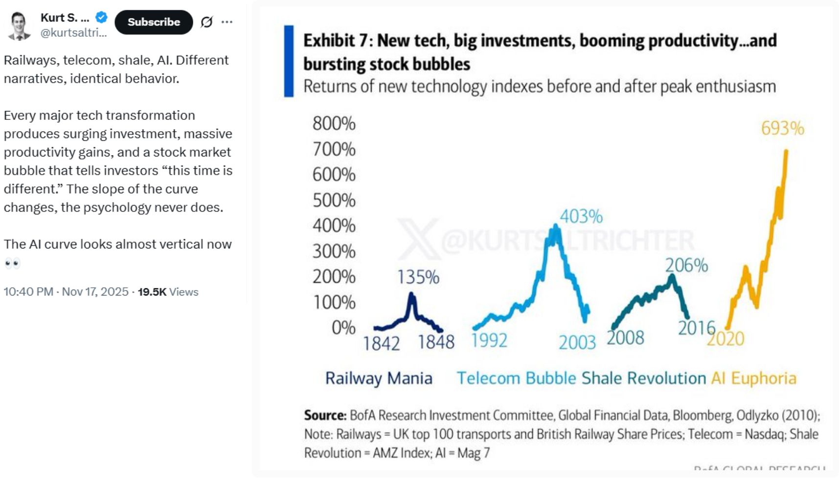 A critical discussion based on a recent market observation highlights the parallels between the current AI Stock Euphoria and major technological transformations of the past. The source of this insight is Bank of America Global Research.