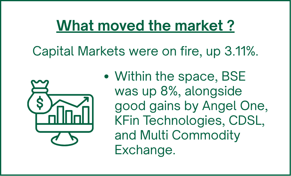 The Reserve Bank of India (RBI) also made a significant announcement, calling out strong capital inflows for the coming times and assuring the market of the strength of the currency, which itself moved up slightly.