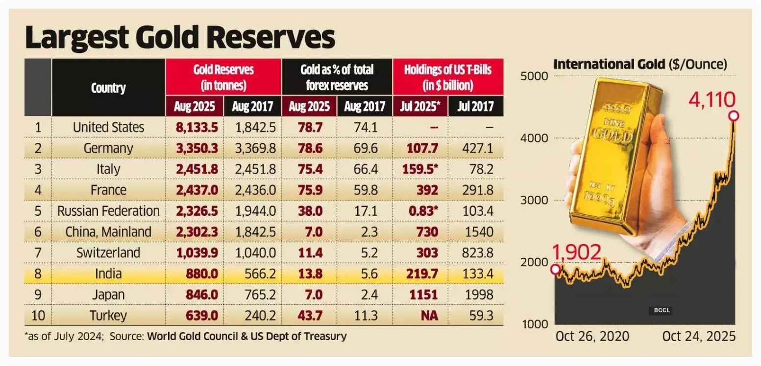 🥇 Top 10 Countries by Gold Reserves (in Metric Tons)