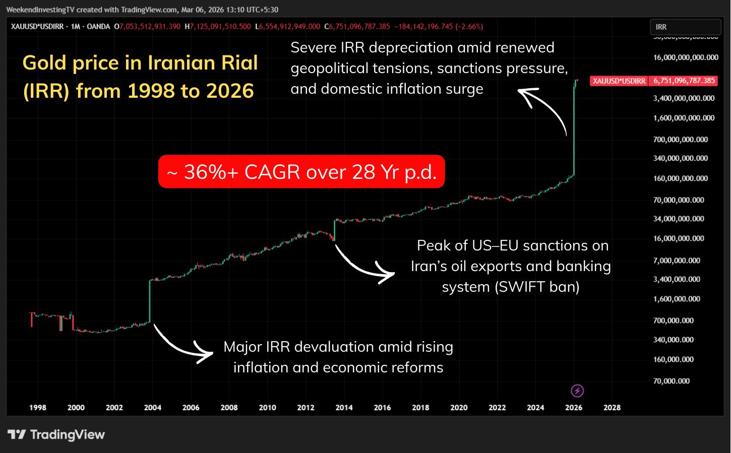 When a country is decoupled from global systems—like Iran's exit from the SWIFT network—the local currency often bears the brunt. However, gold in local terms has delivered a 36% Compound Annual Growth Rate (CAGR) over the last 28 years. While the currency "blew up," gold acted as a stabilizer, ensuring that those who held it didn't lose their seat at the economic table.