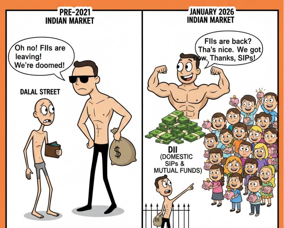 The most exciting part isn't just that domestic investors are leading; it’s what happens next. If the US Dollar weakens or global allocation toward emerging markets increases, FIIs will eventually have to come back in a big way to catch up.