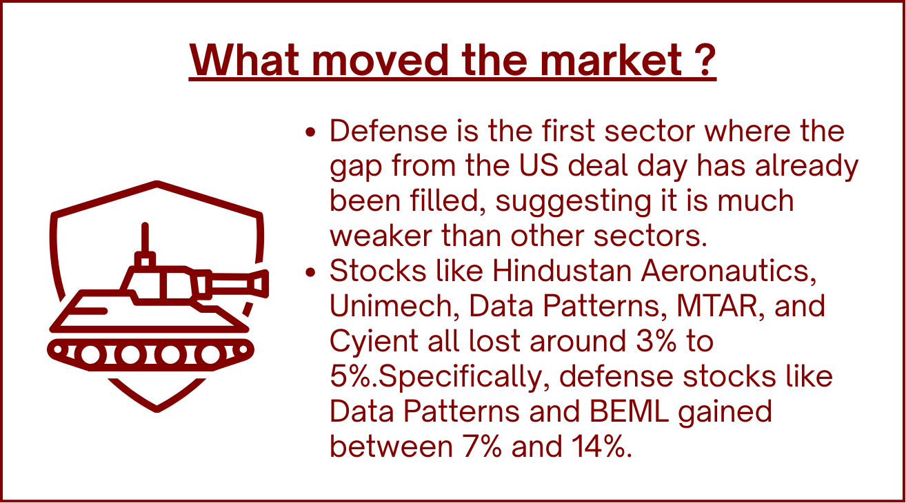 Two days after the so-called US-India deal, it has been announced that there is still work happening on the deal. It is likely that some parts of it will get closed in the next four or five days. So nothing is certain, no fine print is known, and the market also was not so happy on this news. The jump that the market did two days back has almost been half given away.