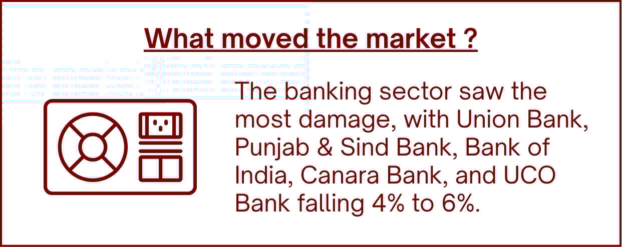 However, heavyweights took a hit, with HDFC Bank down 3%, State Bank down 4%, and no relief for Kotak, Axis, or ICICI.