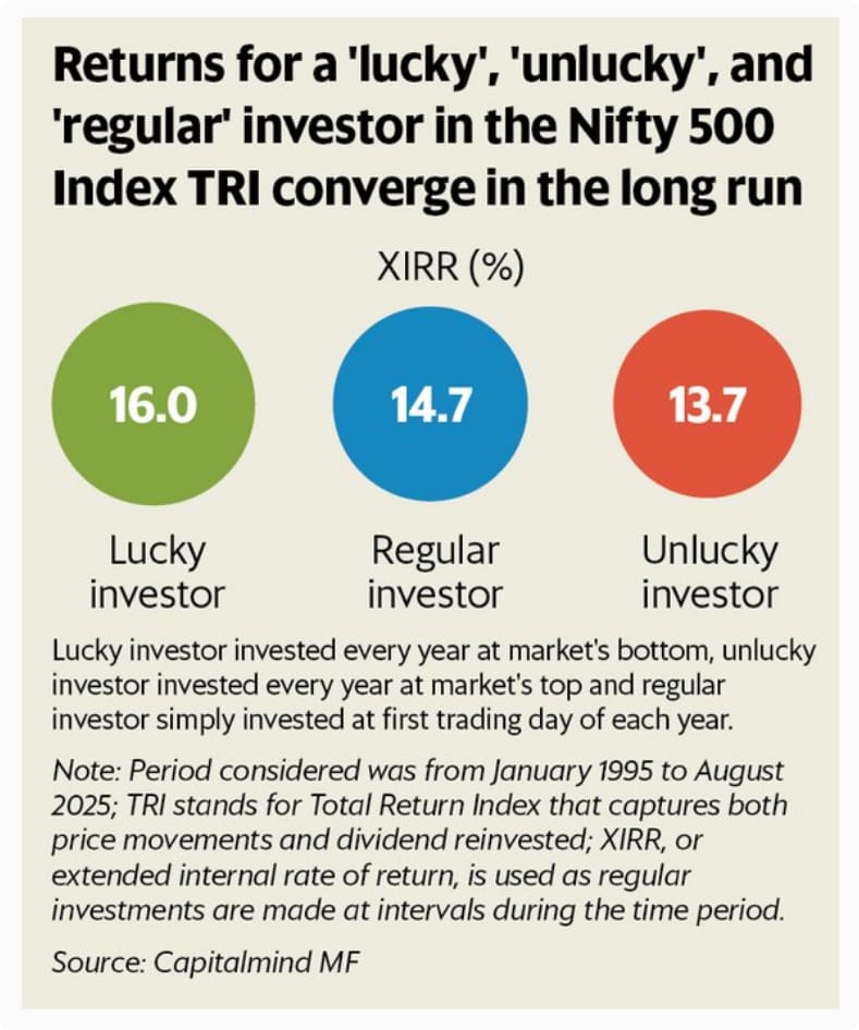 A fascinating study recently compared three types of investors over a 30-year period in the Nifty. The goal? To see how much "market timing" actually impacts your final wealth. The results are a massive relief for anyone who stresses over "buying at the right time."