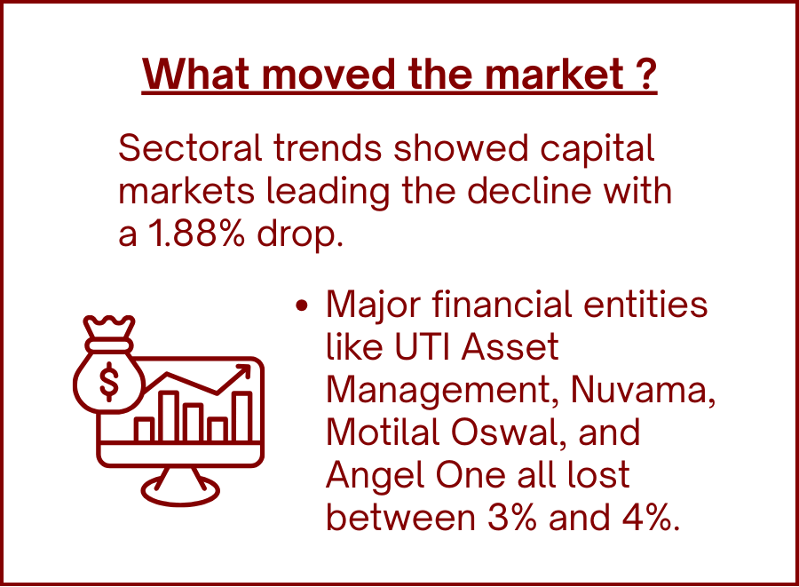Individual stock performance was mixed. Major players like ICICI Bank, HDFC Bank, Coal India, BEL, and Nestle lost ground.