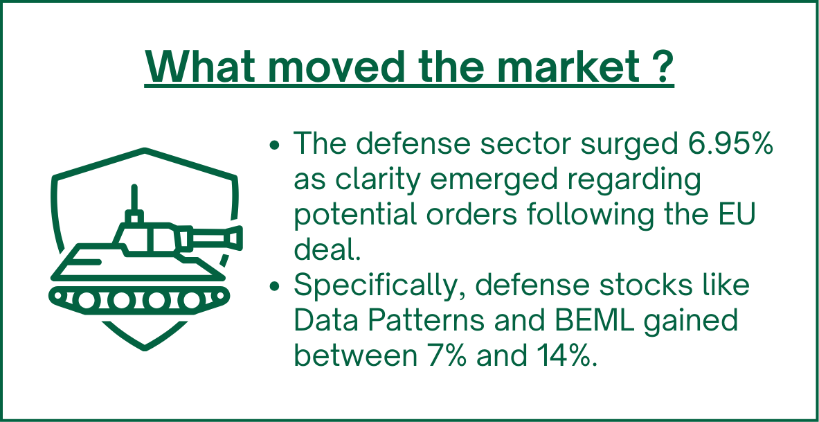 In the Nifty Next 50, the heatmap was very green. CG Power had an amazing run up 9.6%, Solar Industries was up 9%, and HAL gained 6%.