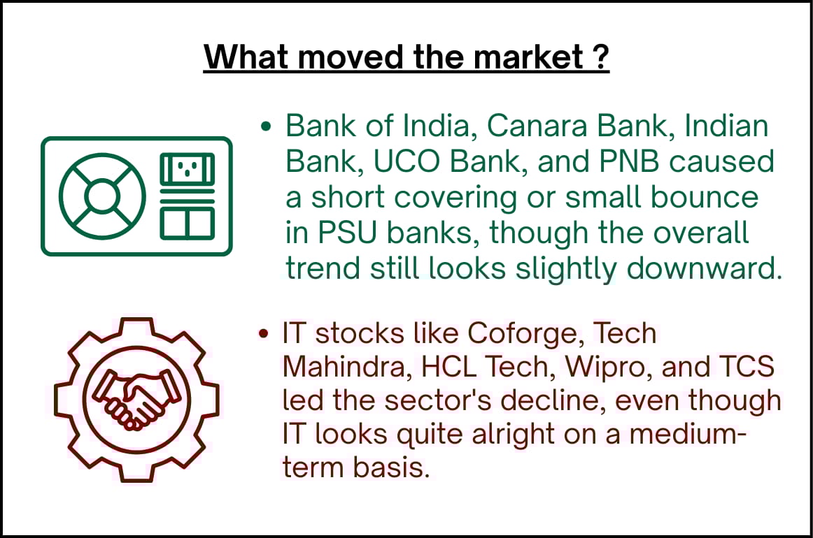 The Nifty Junior was up half a percent, climbing nearly 1,300 points from its low of 66,403, which was a good recovery, but its weak structure persists.